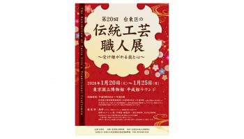 台東区は江戸の昔から庶民の町、江戸文化発祥の町として栄え、今なお、当時からの神社仏閣や、粋でいなせな町人気質、職人が培った伝統工芸産業など、江戸の面影を残す都内随一の史跡、文化を擁しています。そんな歴史と風土の中で育まれ受け継がれてきた匠の手仕事をご紹介するため、「台東区の伝統工芸職人展」を開催いたします。